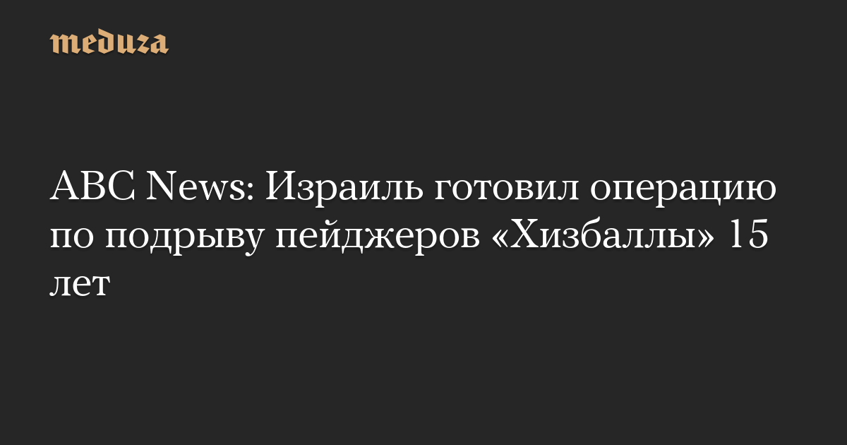 Израиль планировал операцию по взрыву пейджеров членов «Хизбаллы» по меньшей мере 15 лет, утверждает ABC News со ссылкой на источник в американской разведке.