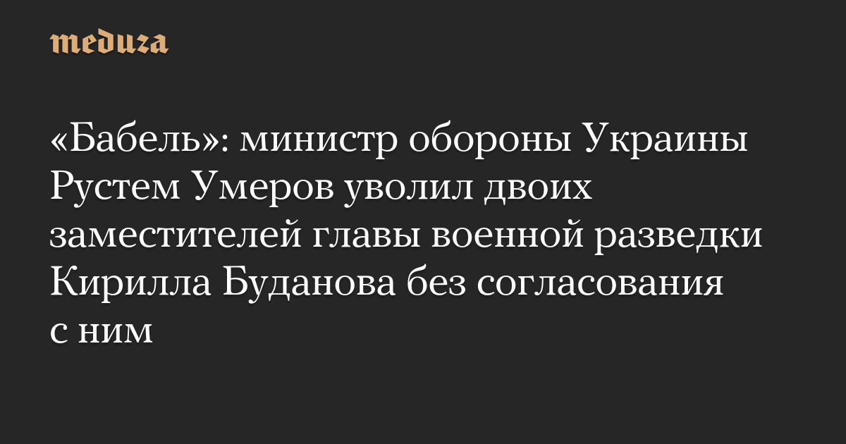 «Бабель»: министр обороны Украины Рустем Умеров уволил двоих заместителей главы военной разведки Кирилла Буданова без согласования с ним