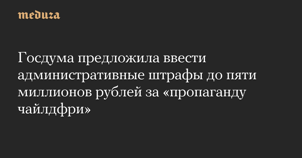 Госдума предложила ввести административные штрафы до пяти миллионов рублей за «пропаганду чайлдфри»