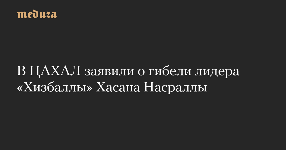 Лидер «Хизбаллы» Хасан Насралла убит в результате удара, нанесенного израильскими ВВС по штабу движения в Бейруте, объявила пресс-служба Армии обороны Израиля.