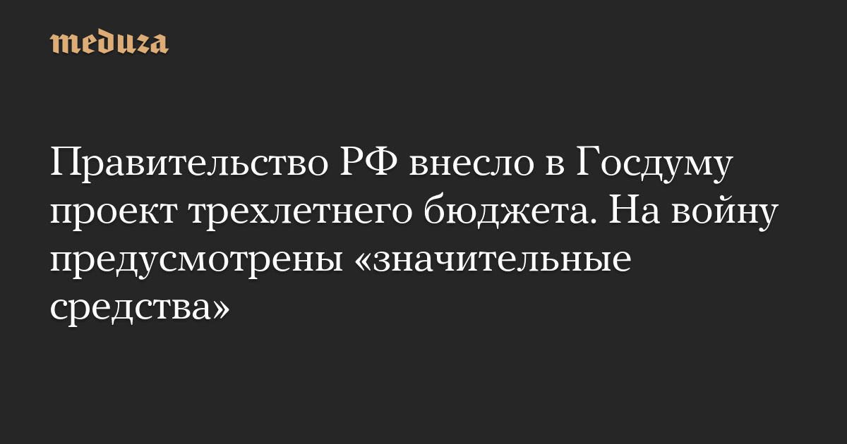 Правительство РФ внесло в Госдуму проект трехлетнего бюджета. На войну предусмотрены «значительные средства»