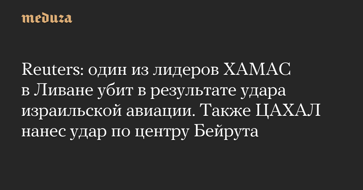 Reuters: один из лидеров ХАМАС в Ливане убит в результате удара израильской авиации. Также ЦАХАЛ нанес удар по центру Бейрута