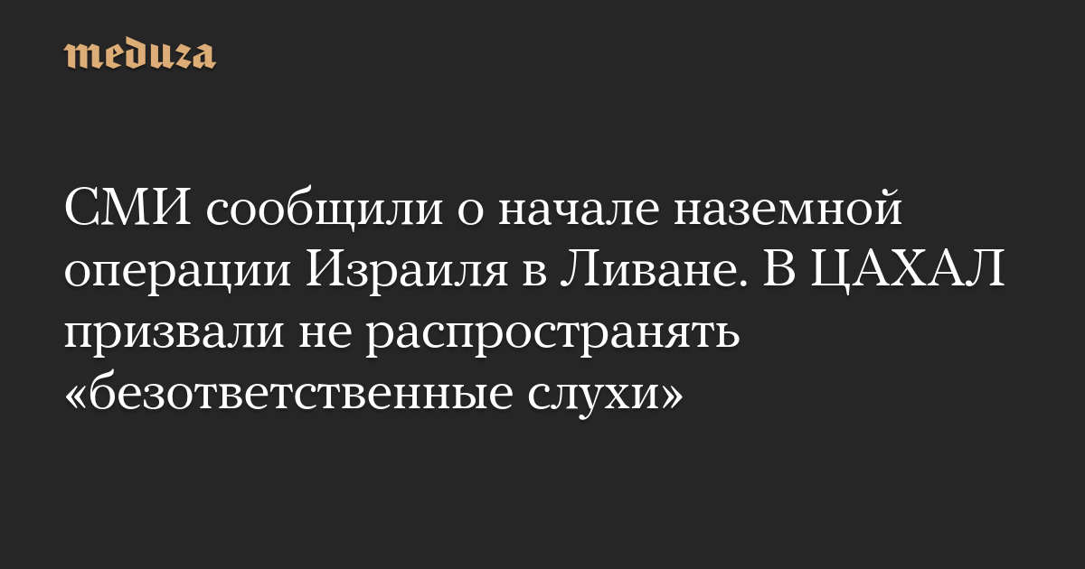 СМИ сообщили о начале наземной операции Израиля в Ливане. В ЦАХАЛ призвали не распространять «безответственные слухи»