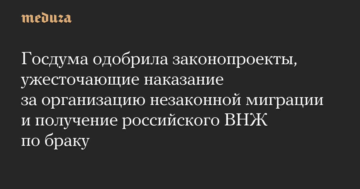 Госдума одобрила законопроекты, ужесточающие наказание за организацию незаконной миграции и получение российского ВНЖ по браку