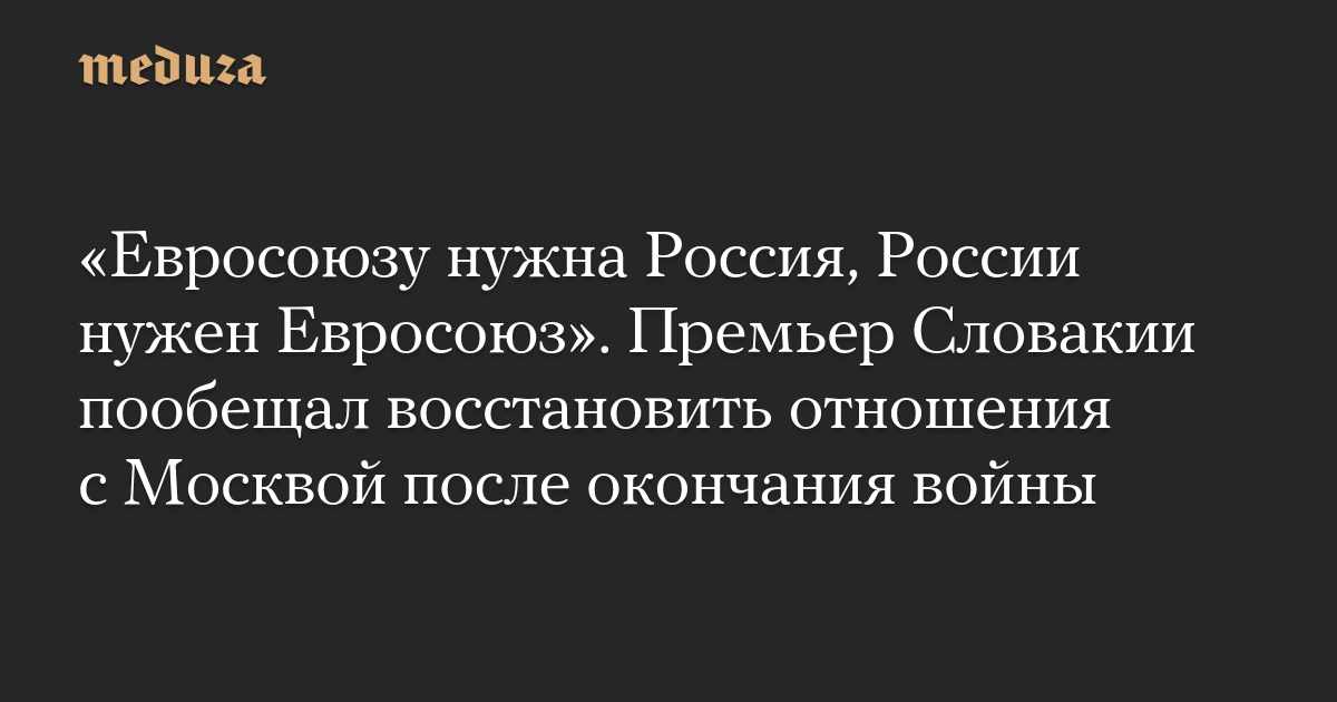 «Евросоюзу нужна Россия, России нужен Евросоюз». Премьер Словакии пообещал восстановить отношения с Москвой после окончания войны