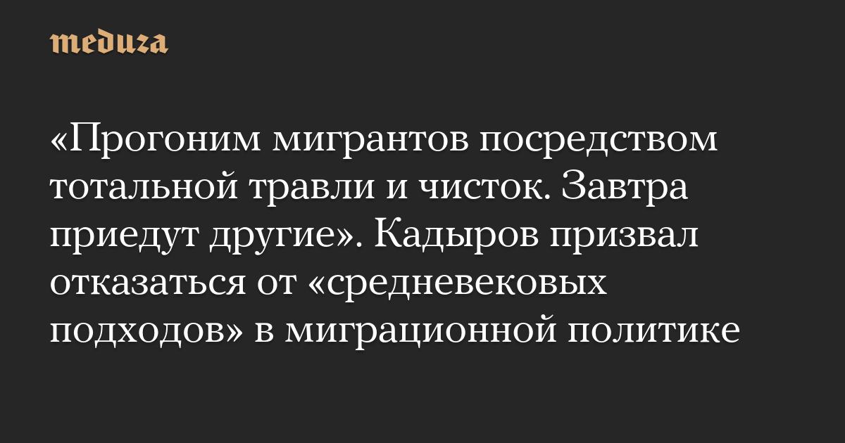 «Прогоним мигрантов посредством тотальной травли и чисток. Завтра приедут другие». Кадыров призвал отказаться от «средневековых подходов» в миграционной политике