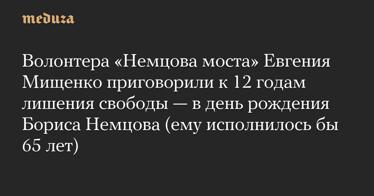 Волонтера «Немцова моста» Евгения Мищенко приговорили к 12 годам лишения свободы — в день рождения Бориса Немцова (ему исполнилось бы 65 лет)