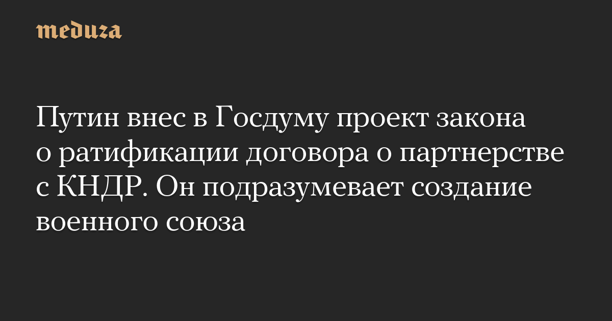 Путин внес в Госдуму проект закона о ратификации договора о партнерстве с КНДР. Он подразумевает создание военного союза