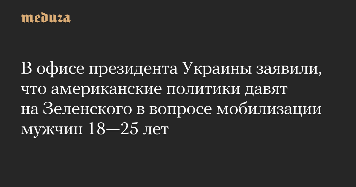 В офисе президента Украины заявили, что американские политики давят на Зеленского в вопросе мобилизации мужчин 18–25 лет