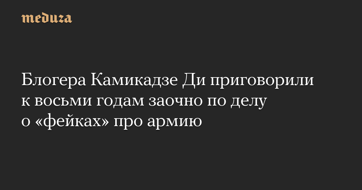Блогера Камикадзе Ди приговорили к восьми годам заочно по делу о «фейках» про армию
