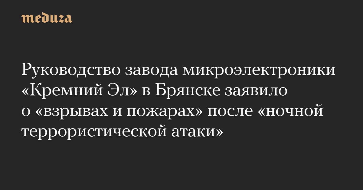 Руководство завода микроэлектроники «Кремний Эл» в Брянске заявило о «взрывах и пожарах» после «ночной террористической атаки»