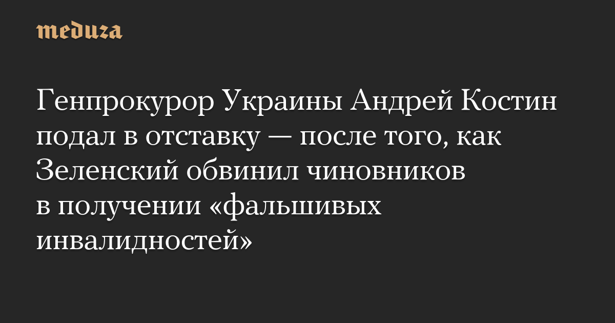 Генпрокурор Украины Андрей Костин подал в отставку — после того, как Зеленский обвинил чиновников в получении «фальшивых инвалидностей»