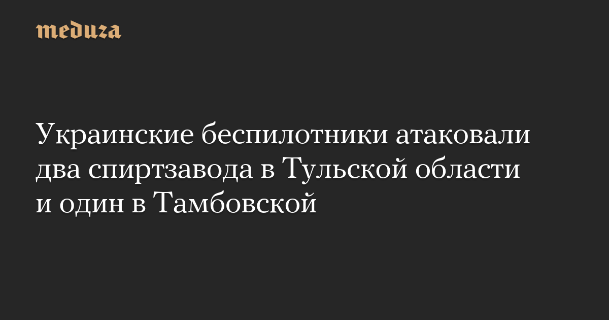 Украинские беспилотники атаковали два спиртзавода в Тульской области и один в Тамбовской