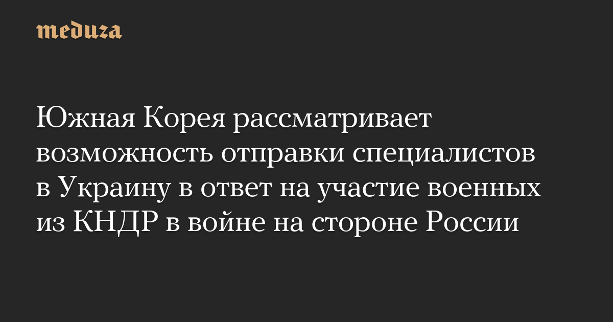 Южная Корея рассматривает возможность отправки специалистов в Украину в ответ на участие военных из КНДР в войне на стороне России