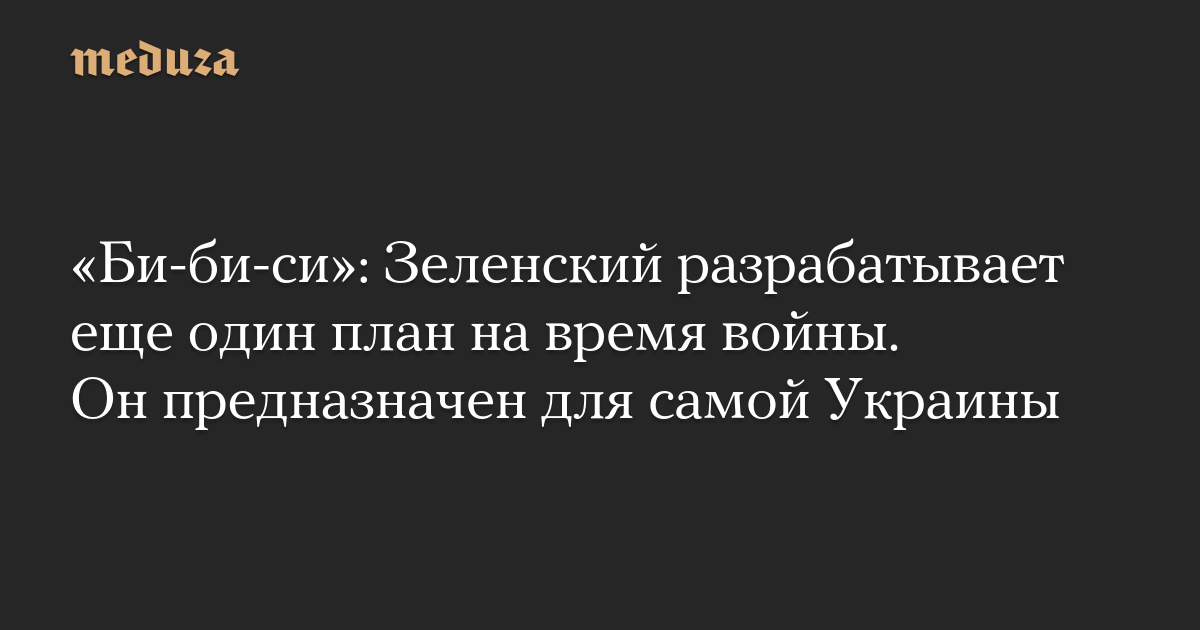 «Би-би-си»: Зеленский разрабатывает еще один план на время войны. Он предназначен для самой Украины