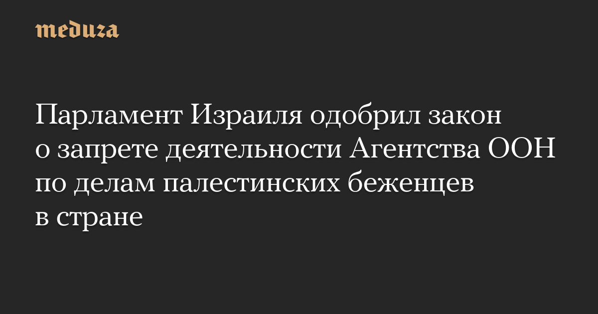 Парламент Израиля (Кнессет) одобрил во втором и третьем чтениях два законопроекта, которые запрещают деятельность Ближневосточного агентства ООН для помощи палестинским беженцам (БАПОР) на территории страны. Об этом сообщили радио «Кан» и The Times of Israel.