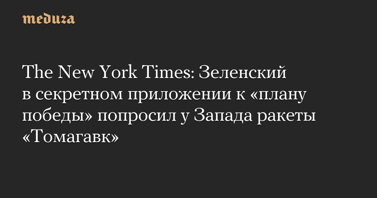The New York Times: Зеленский в секретном приложении к «плану победы» попросил у Запада ракеты «Томагавк»