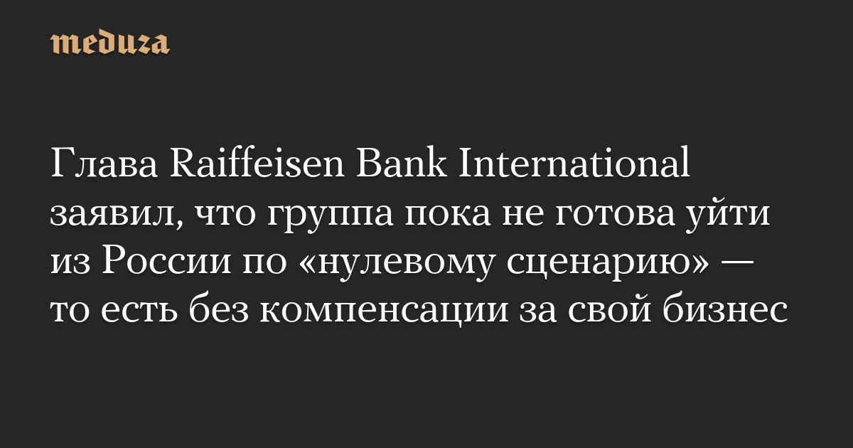 Глава Raiffeisen Bank International заявил, что группа пока не готова уйти из России по «нулевому сценарию» — то есть без компенсации за свой бизнес