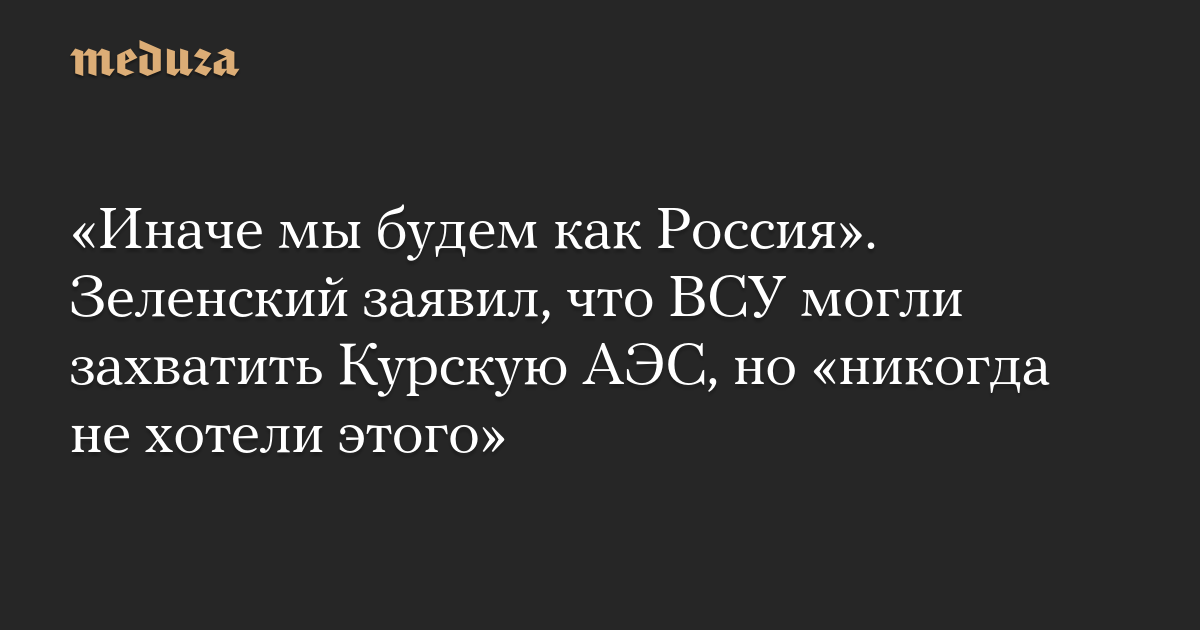 «Иначе мы будем как Россия». Зеленский заявил, что ВСУ могли захватить Курскую АЭС, но «никогда не хотели этого»