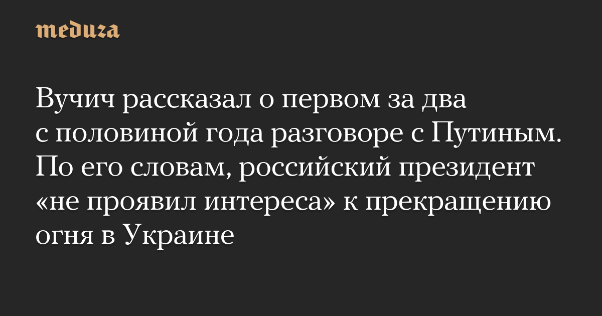 Вучич рассказал о первом за два с половиной года разговоре с Путиным. По его словам, российский президент «не проявил интереса» к прекращению огня в Украине