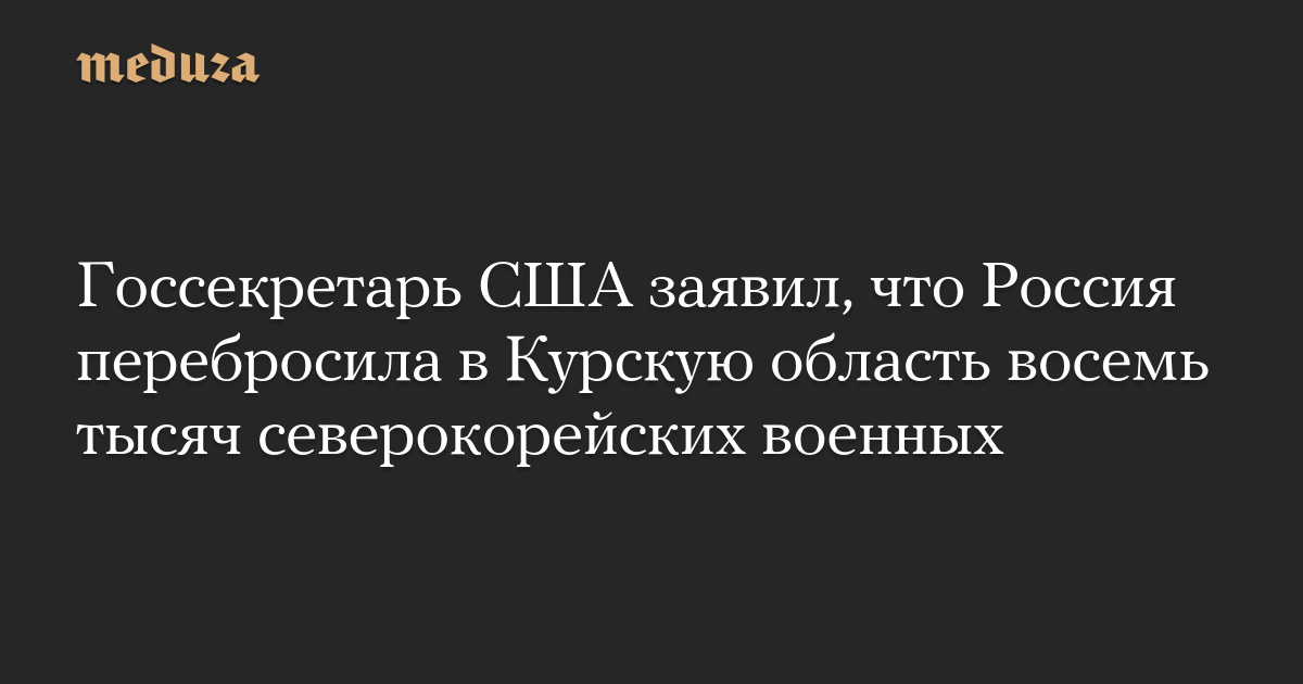 Госсекретарь США заявил, что Россия перебросила в Курскую область восемь тысяч северокорейских военных