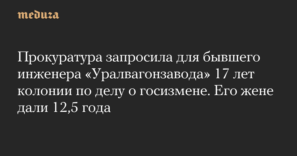 Прокуратура запросила для бывшего инженера «Уралвагонзавода» 17 лет колонии по делу о госизмене. Его жене дали 12,5 года