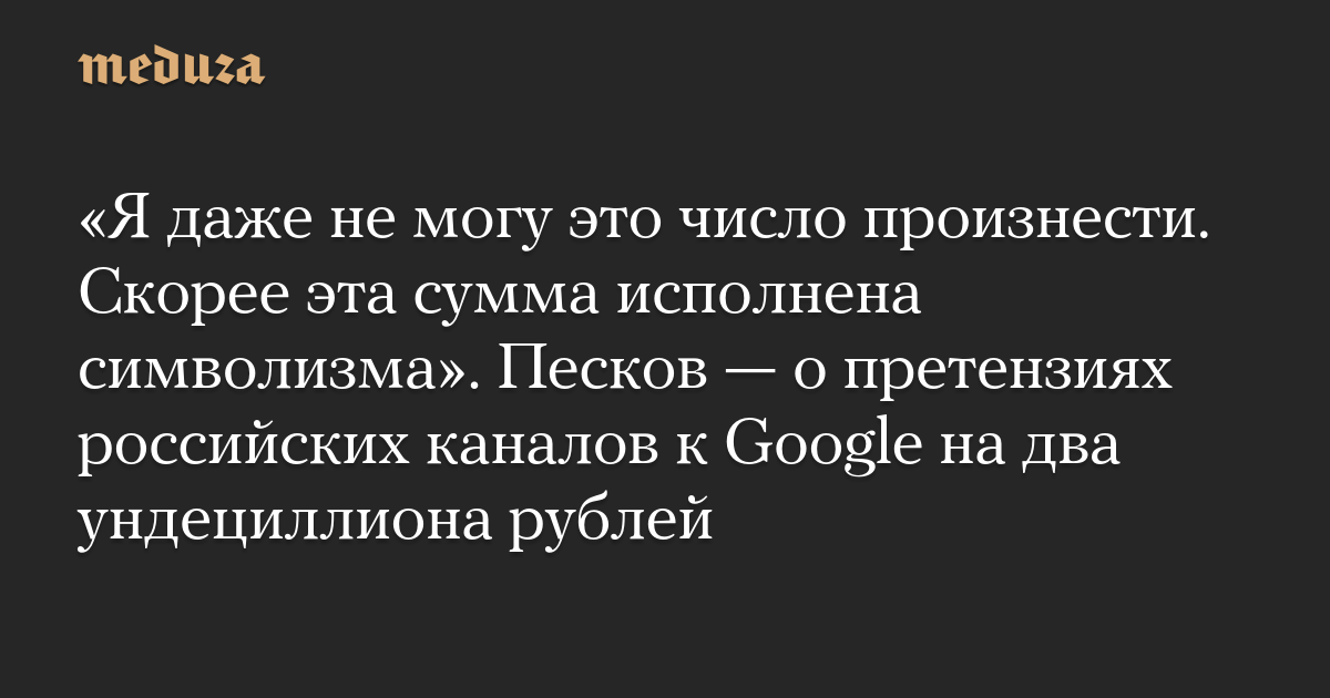 «Я даже не могу это число произнести. Скорее эта сумма исполнена символизма». Песков — о претензиях российских каналов к Google на два ундециллиона рублей
