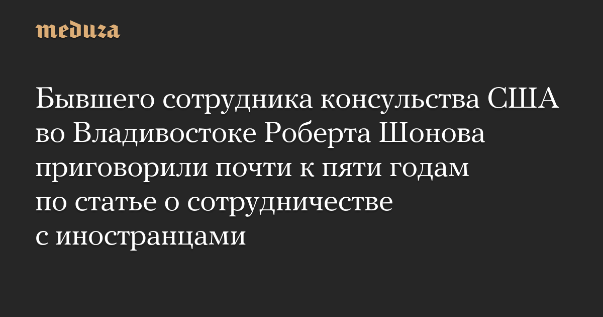 Бывшего сотрудника консульства США во Владивостоке Роберта Шонова приговорили почти к пяти годам по статье о сотрудничестве с иностранцами