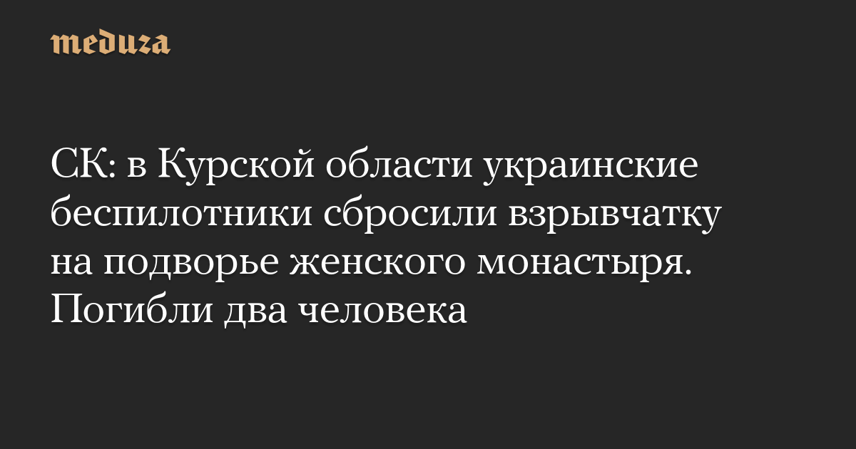 СК: в Курской области украинские беспилотники сбросили взрывчатку на подворье женского монастыря. Погибли два человека