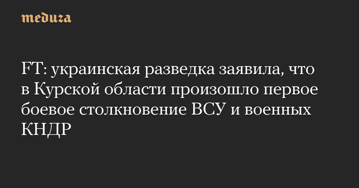 FT: украинская разведка заявила, что в Курской области произошло первое боевое столкновение ВСУ и военных КНДР