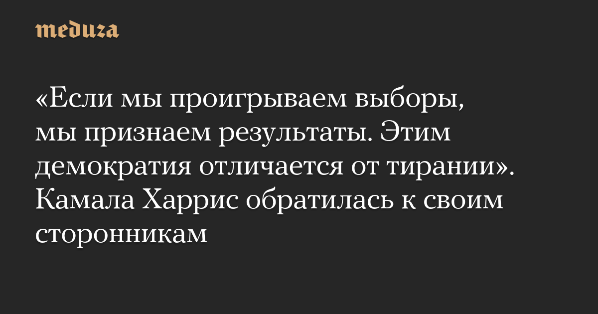 «Если мы проигрываем выборы, мы признаем результаты. Этим демократия отличается от тирании». Камала Харрис обратилась к своим сторонникам