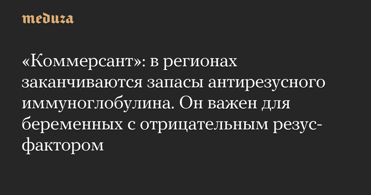В ряде регионов по всей России заканчиваются запасы антирезусного иммуноглобулина — препарата, который крайне важен для беременных с отрицательным резус-фактором крови, выяснил «Коммерсант».