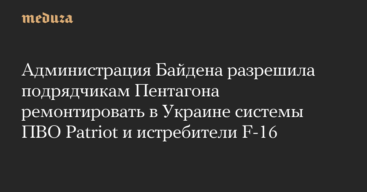 Администрация Байдена разрешила подрядчикам Пентагона ремонтировать в Украине системы ПВО Patriot и истребители F-16