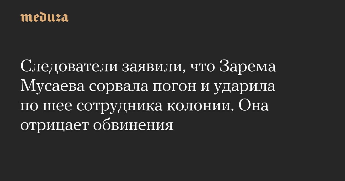 Следователи заявили, что Зарема Мусаева сорвала погон и ударила по шее сотрудника колонии. Она отрицает обвинения