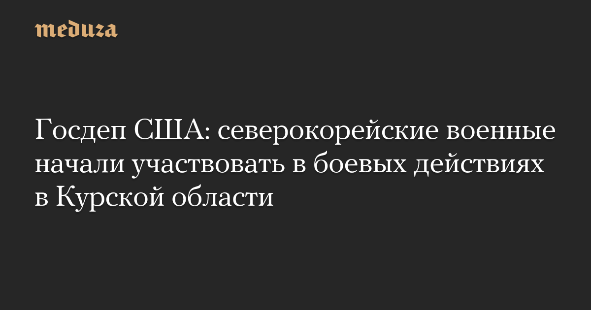 Госдеп США: северокорейские военные начали участвовать в боевых действиях в Курской области