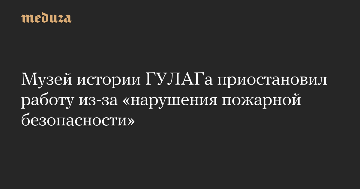 Музей истории ГУЛАГа приостановил работу из-за «нарушения пожарной безопасности»