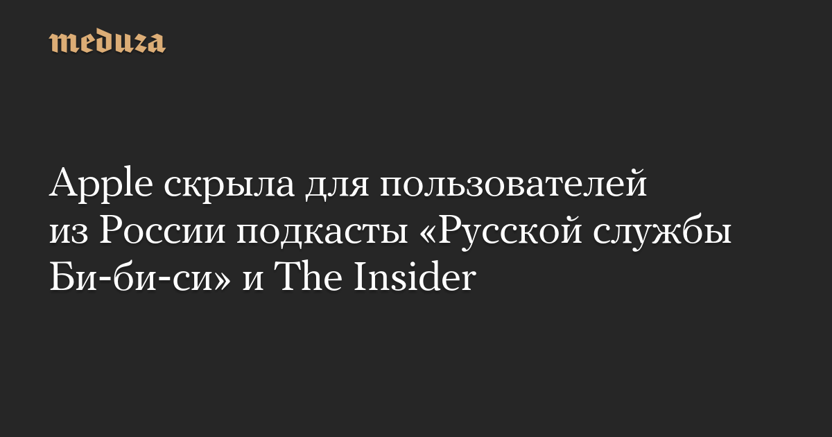 Apple скрыла для пользователей из России подкасты «Русской службы Би‑би‑си» и The Insider