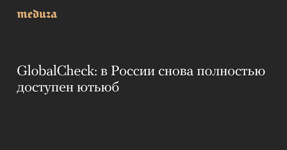 Видеохостинг YouTube снова доступен у всех российских операторов, свидетельствуют данные сервиса по мониторингу блокировок GlobalCheck.