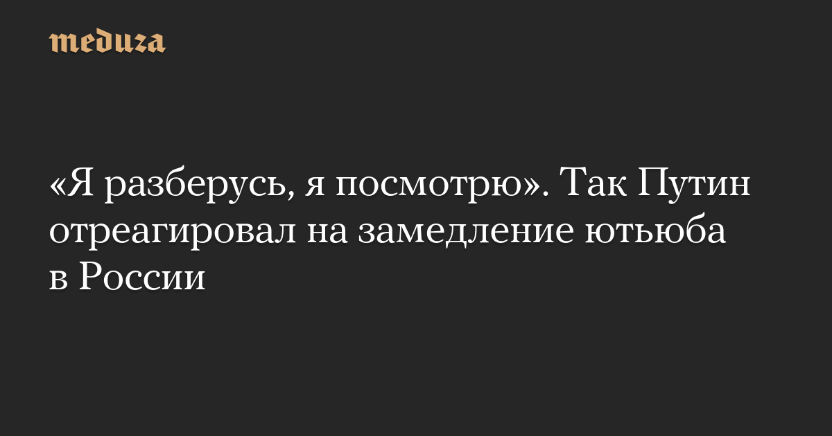 «Я разберусь, я посмотрю». Так Путин отреагировал на замедление ютьюба в России