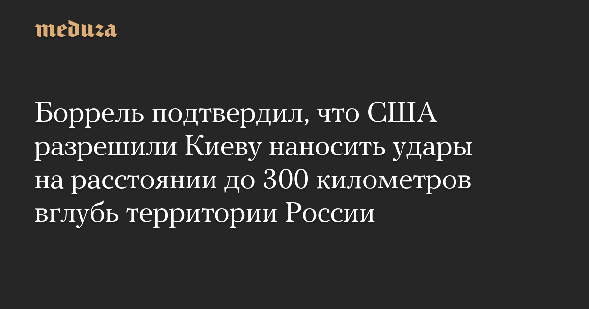 Боррель ответил, что администрация Байдена разрешила Украине применять ракеты на расстоянии до 300 километров вглубь российской территории и в радиусе 300 километров. «Это не очень много, но это решение администрации Байдена», — добавил глава европейской дипломатии. Он заявил, что не знает, почему это решение было принято сейчас, но оно обсуждалось ранее и в ЕС.