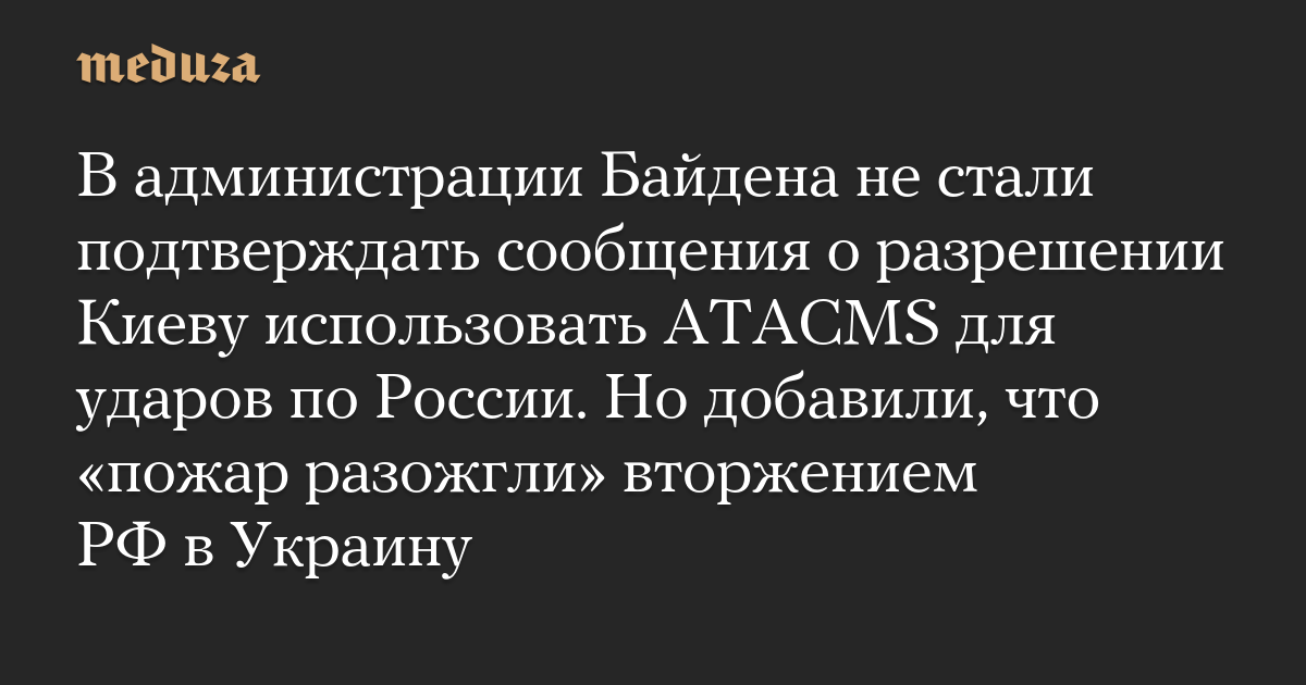 В администрации Байдена не стали подтверждать сообщения о разрешении Киеву использовать ATACMS для ударов по России. Но добавили, что «пожар разожгли» вторжением РФ в Украину