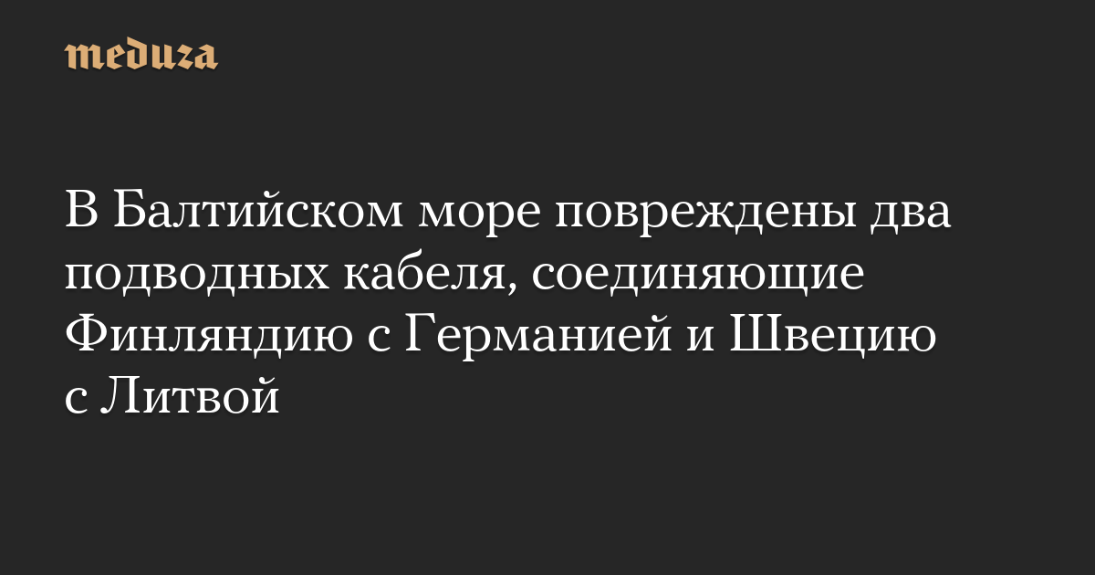 В Балтийском море оказались повреждены два подводных телекоммуникационных кабеля, один из которых соединяет Финляндию с Германией, а другой — Швецию с Литвой.