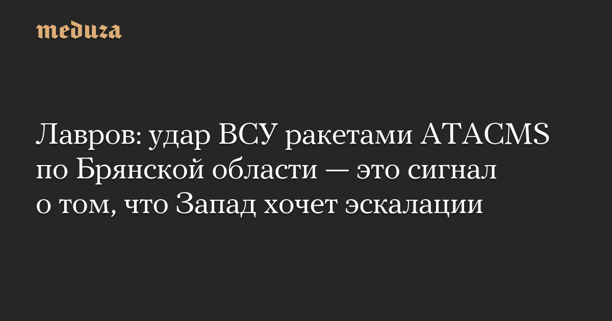 Лавров: удар ВСУ ракетами ATACMS по Брянской области — это сигнал о том, что Запад хочет эскалации