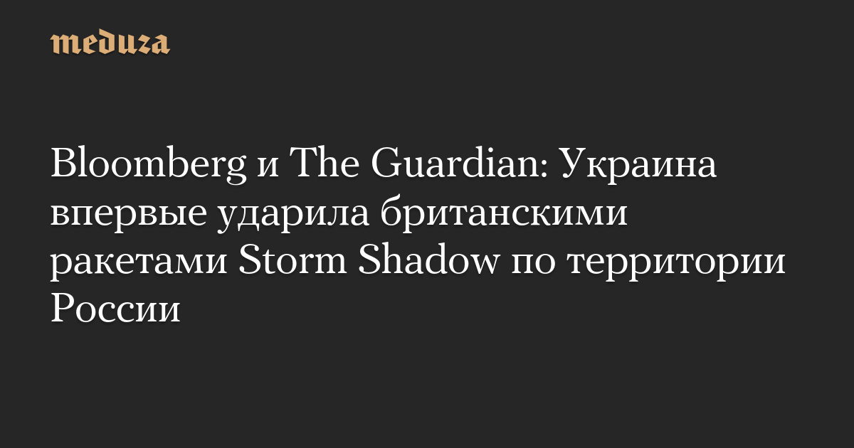 Украина впервые использовала британские дальнобойные ракеты Storm Shadow для удара по целям на территории России. Об этом сообщают The Guardian и Bloomberg со ссылкой на источники.