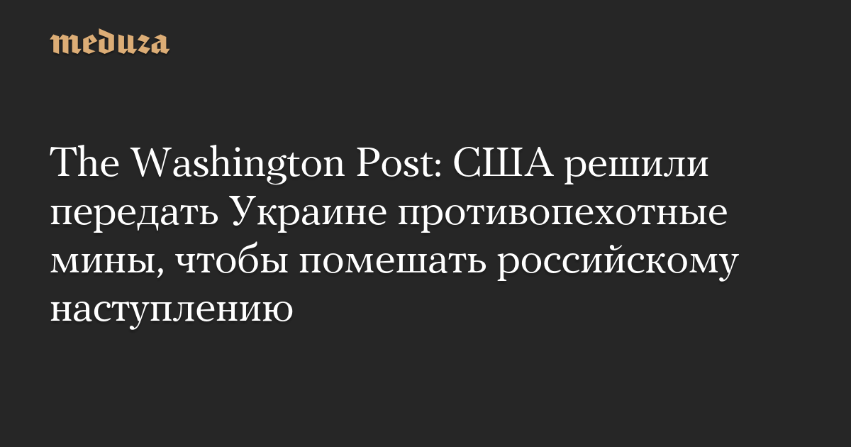 Украинский чиновник, пожелавший остаться неназванным, в комментарии WP приветствовал решение США передать противопехотные мины, несмотря на потенциальные риски, которые они несут. «Россия все равно их использует», — сказал он.