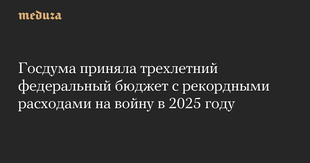 Госдума приняла трехлетний федеральный бюджет с рекордными расходами на войну в 2025 году