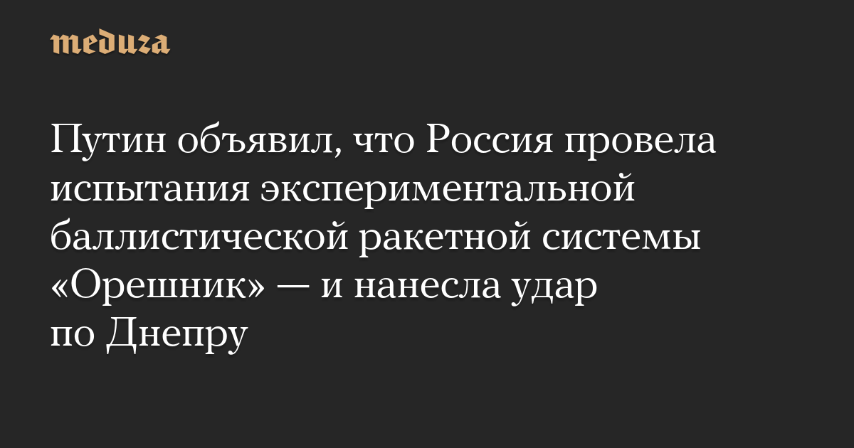 Путин объявил, что Россия провела испытания экспериментальной баллистической ракетной системы «Орешник» — и нанесла удар по Днепру