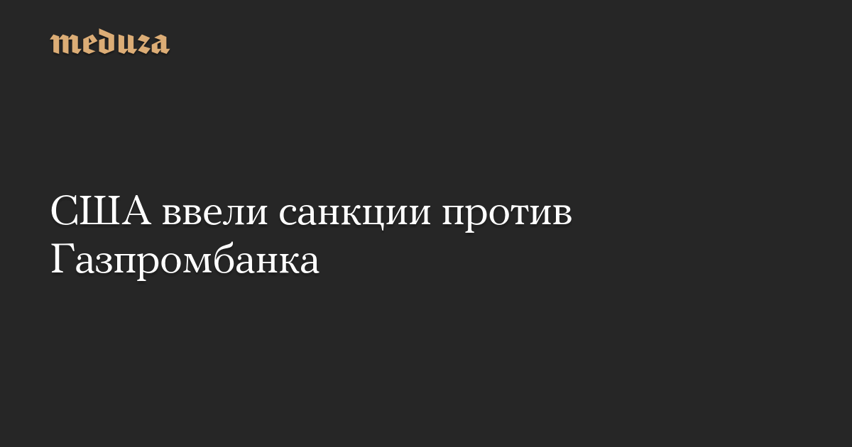 Под санкции попал Газпромбанк и шесть его зарубежных дочерних компаний. В сообщении Минфина сказано, что Россия использует банк, чтобы закупать военное снаряжение для ведения войны в Украине, а также перечислять выплаты российским военным. В Минфине США отметили, что санкции против Газпромбанка ранее ввели Великобритания, Австралия, Канада и Новая Зеландия.