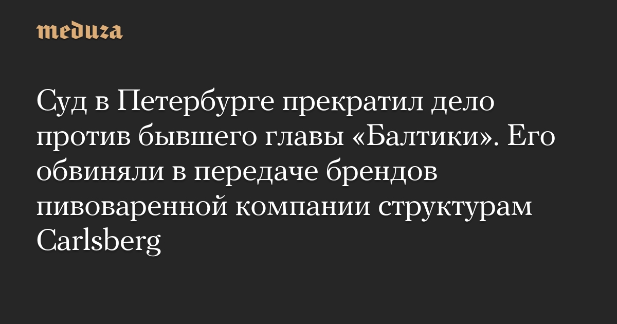Суд в Петербурге прекратил дело против бывшего главы «Балтики». Его обвиняли в передаче брендов пивоваренной компании структурам Carlsberg