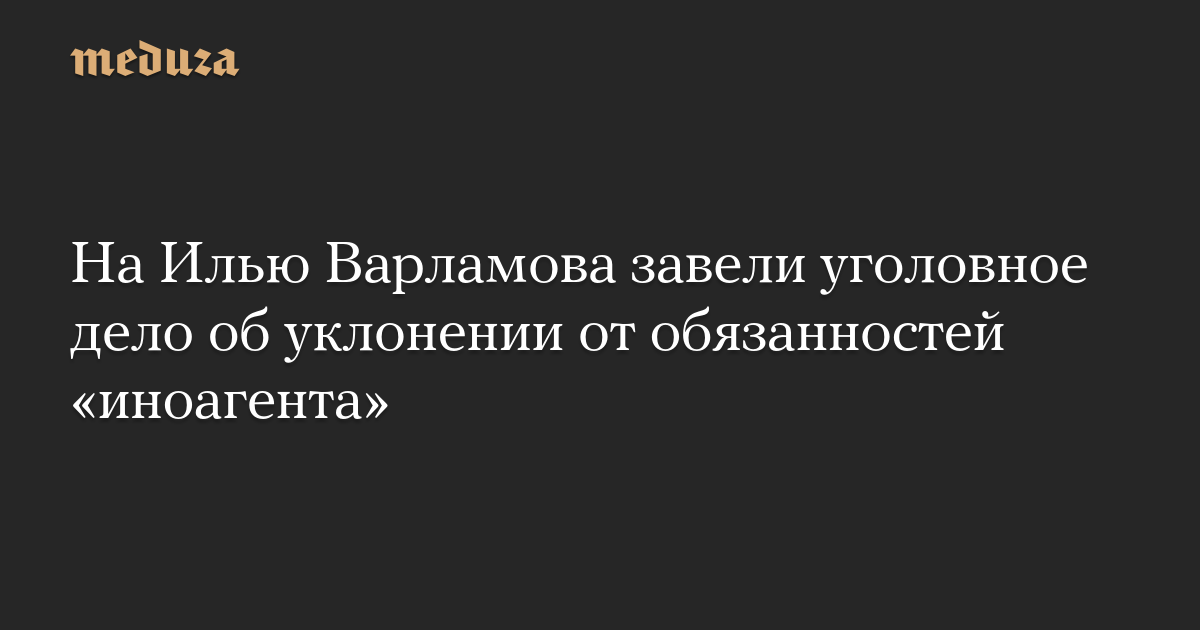 Прокуратура Москвы возбудила уголовное дело против блогера Ильи Варламова, обвинив его в уклонении от исполнения обязанностей «иностранного агента» (часть 2 статьи 330.1 УК).